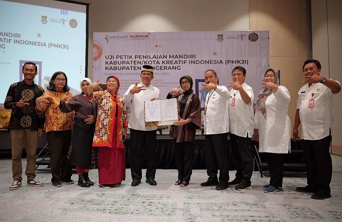 Tangerang – Kementerian Pariwisata dan Ekonomi Kreatif/Badan Pariwisata dan Ekonomi Kreatif (Kemenparekraf/Baparekraf) menggelar kegiatan Penilaian Mandiri Kabupaten Kota Kreatif (PMK3I) di Kabupaten Tangerang, Banten.