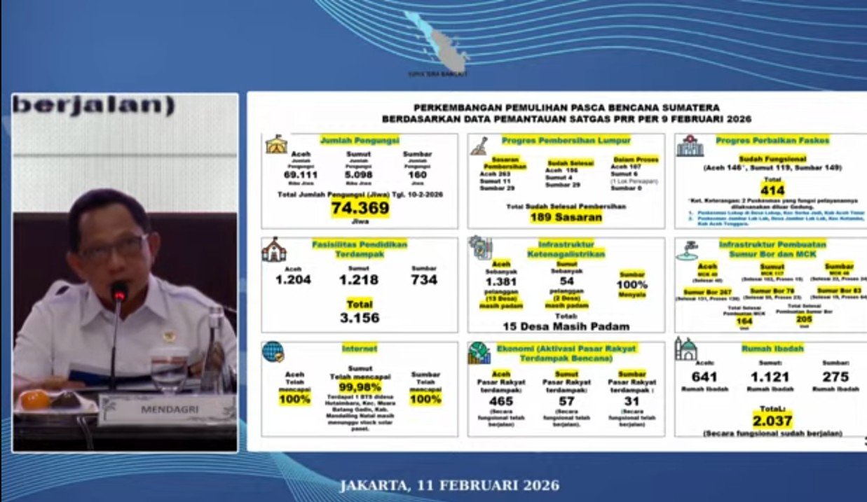 Dalam konferensi pers Percepatan Rehabilitasi dan Rekonstruksi Pascabencana Wilayah Sumatra, Rabu (11/2/2026), Tito menyampaikan terdapat enam daerah yang tidak mengajukan bantuan rehabilitasi rumah karena dampak banjir dinilai tidak terlalu berat dan dapat diselesaikan secara mandiri oleh pemerintah daerah setempat.